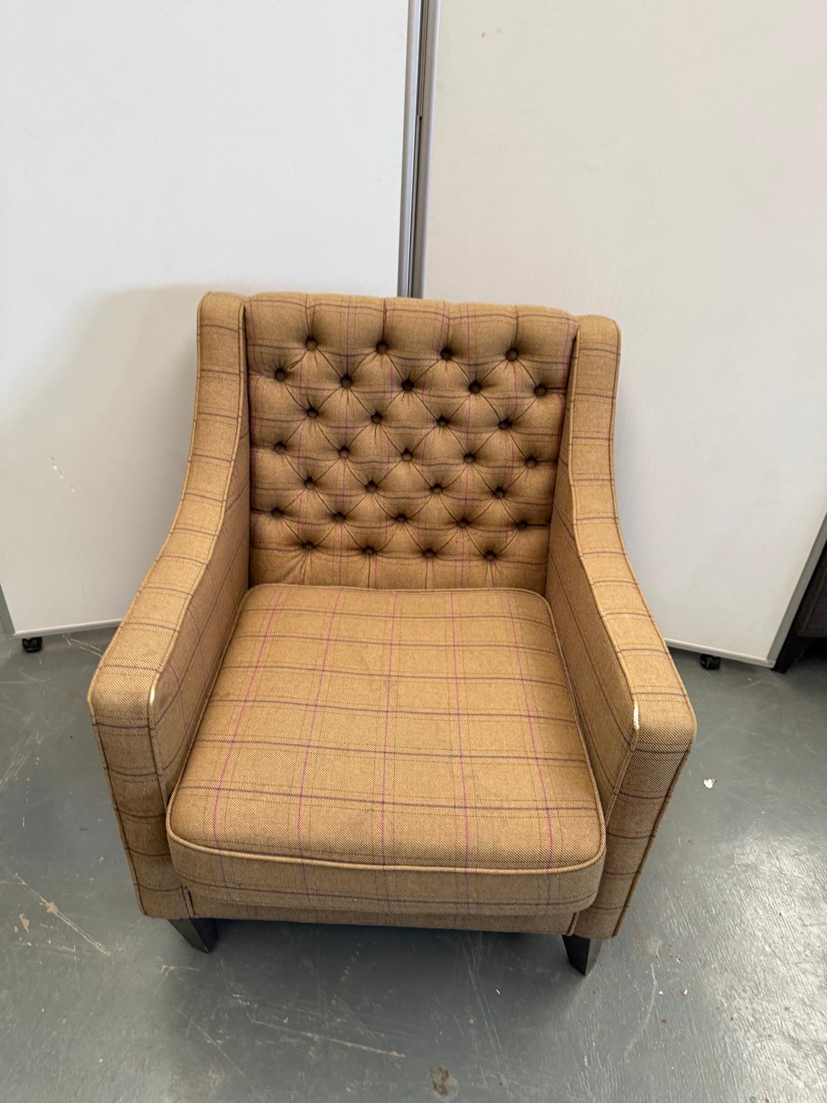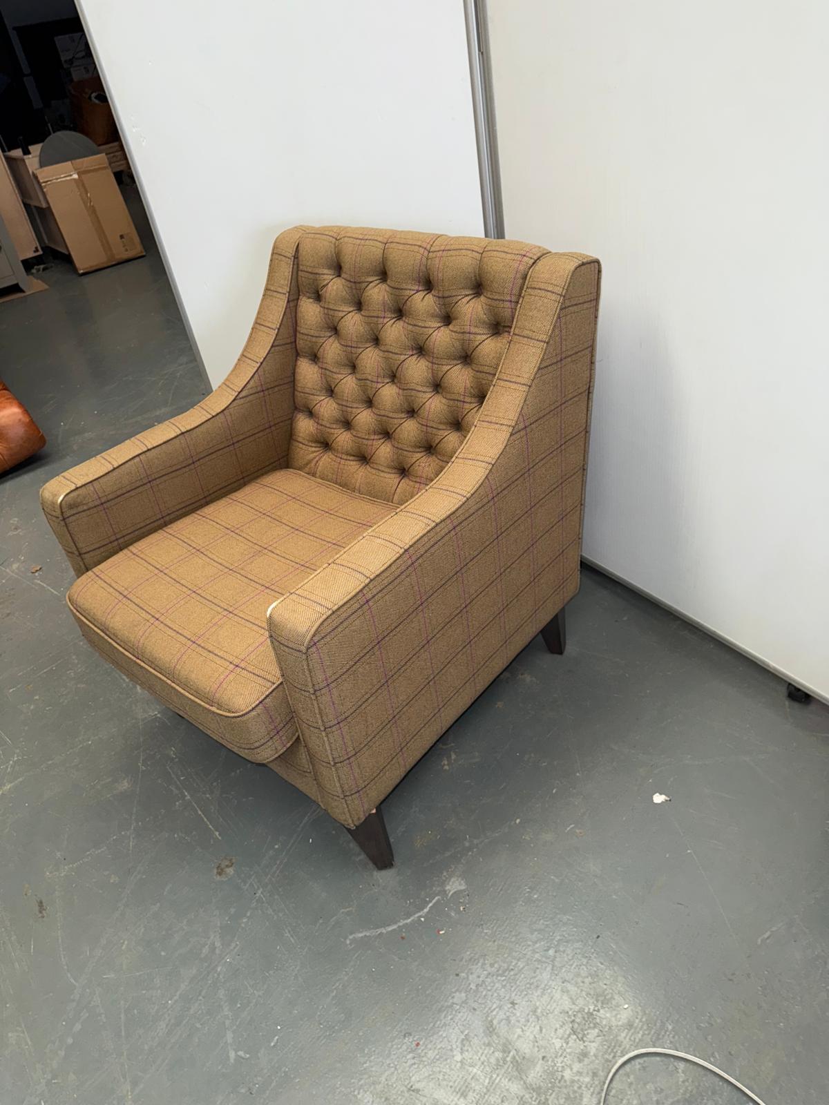 Available in tailored fabric finishes, including traditional check patterns and refined plain tones, the chair adapts effortlessly to a wide range of interior styles, from heritage-led schemes to contemporary commercial spaces.