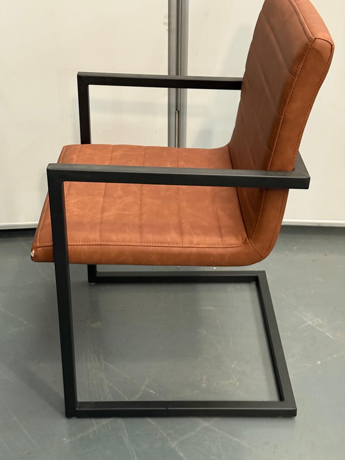 A modern industrial lounge-style chair featuring a durable black steel frame and cushioned tan PU leather upholstery. Designed for comfort, style, and long-lasting performance in both professional and home settings.