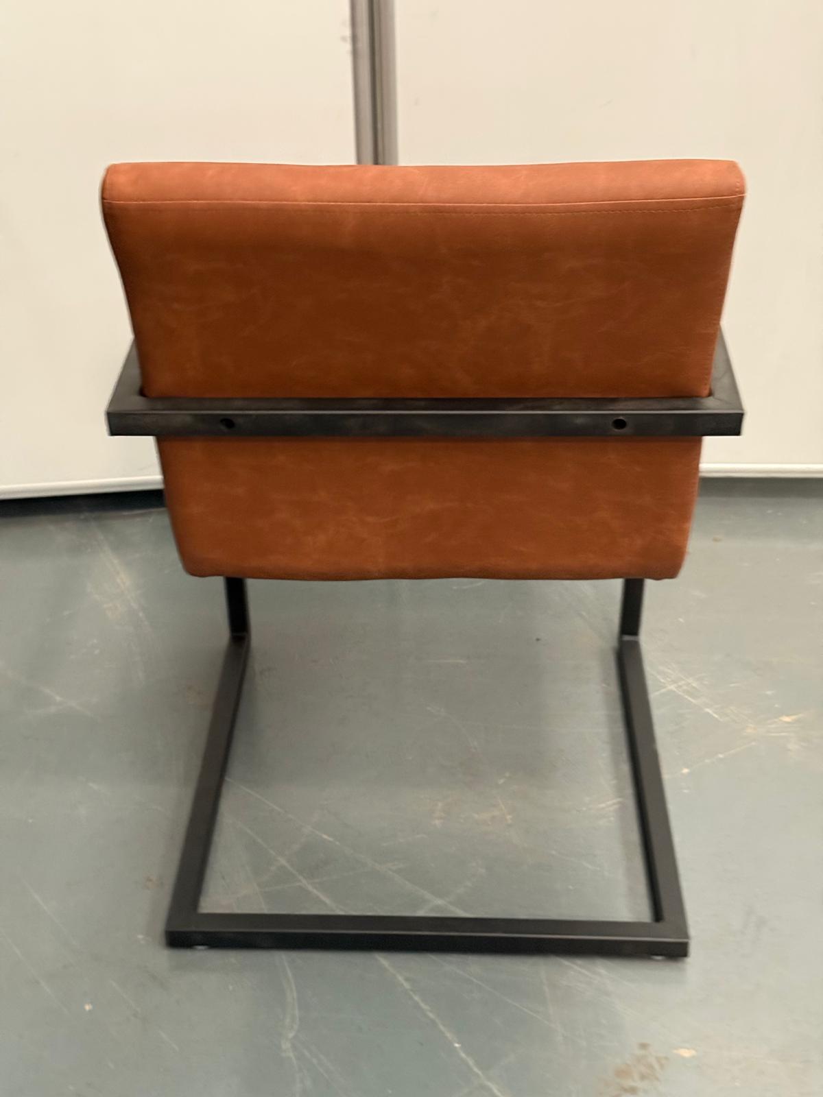 Modern Industrial Lounge Chair – Tan PU Leather with Black Steel Frame