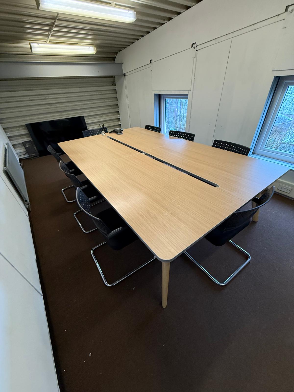 Create a productive, professional workspace with this modern oak-effect meeting table set, designed to support teamwork, presentations, and daily office operations. Featuring a clean, contemporary design with generous surface area, this table comfortably seats up to 8 people, making it ideal for conference rooms, boardrooms, training spaces, or co-working environments.