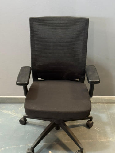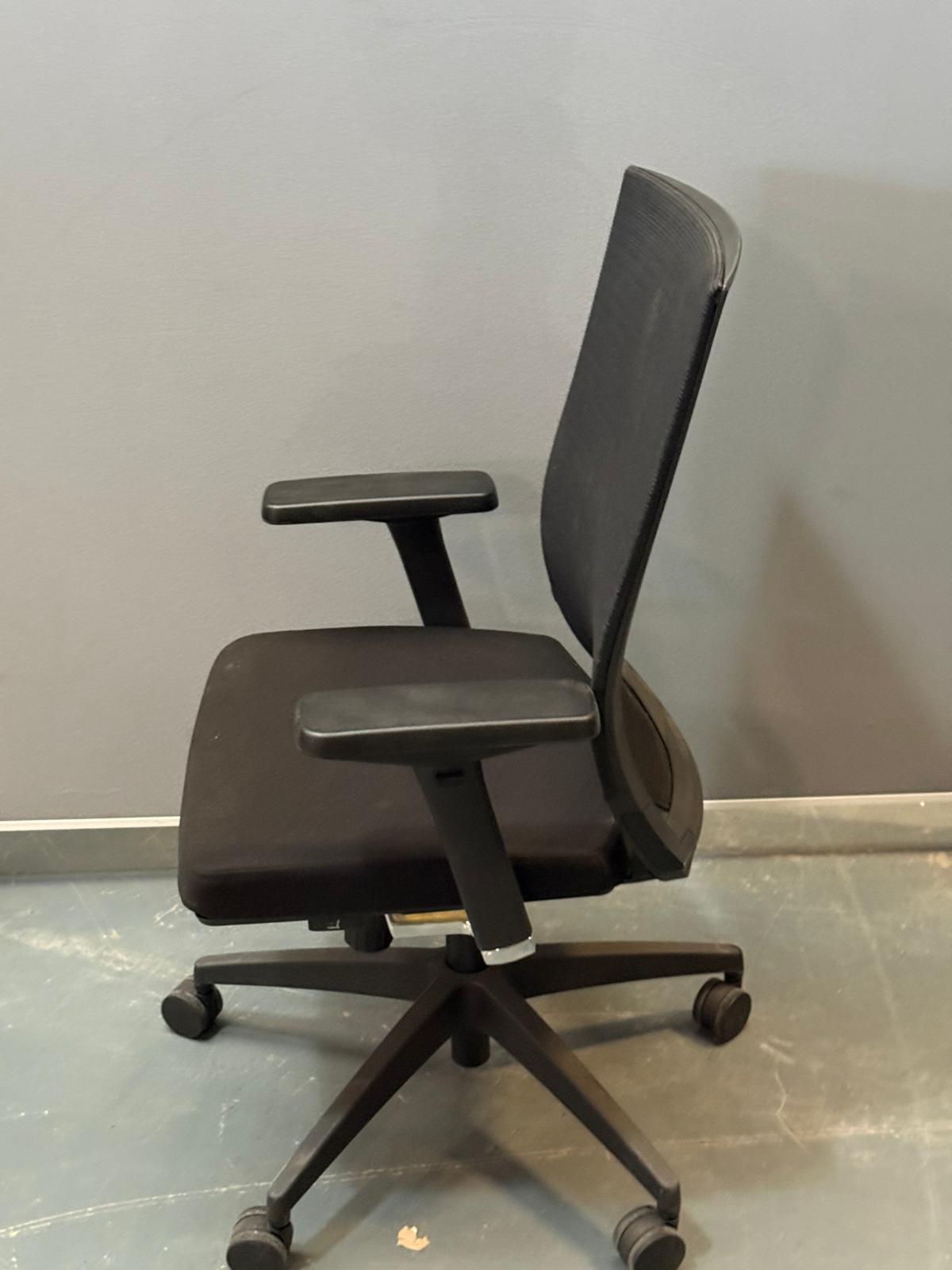 The generously padded fabric seat offers all-day comfort with a balanced level of cushioning, making it suitable for prolonged seated tasks. The chair includes adjustable armrests, allowing users to customise arm support for improved ergonomics and reduced upper-body strain.
