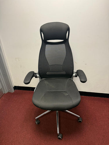 Black Mesh Task Chair – Padded Arms & Chrome Base