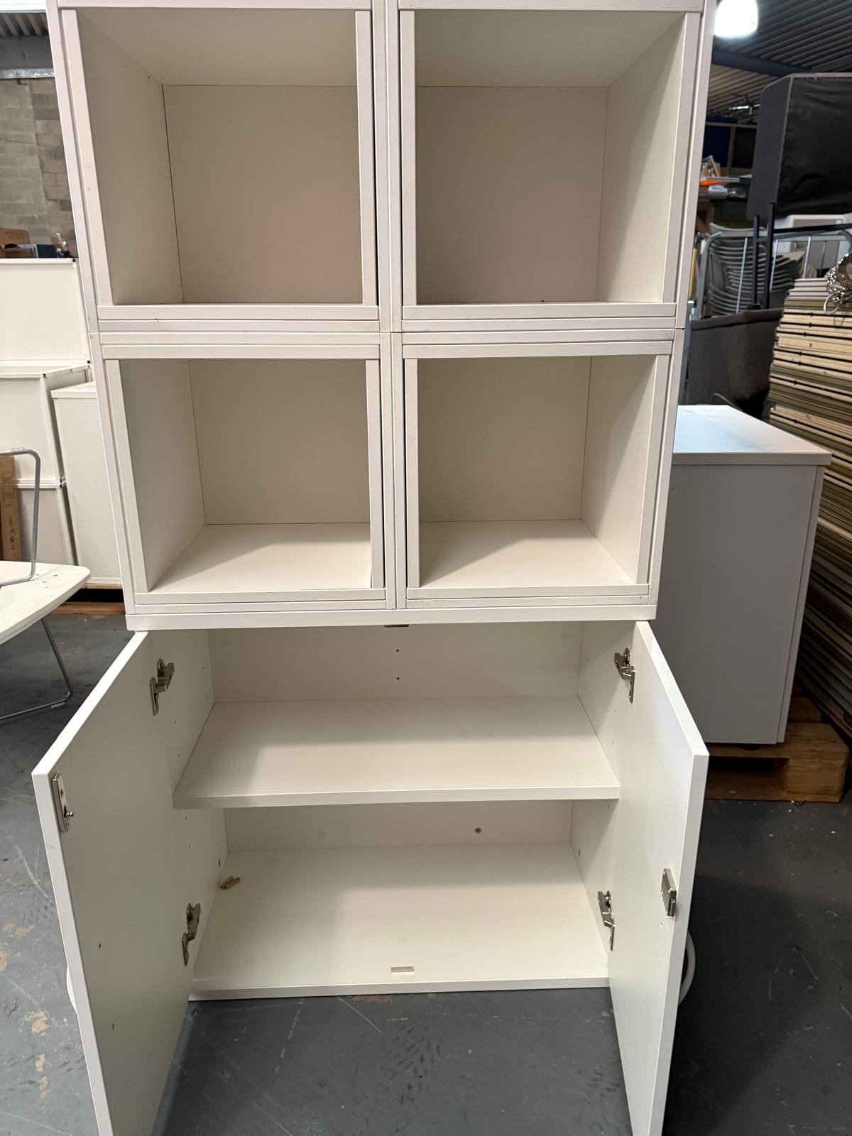 Premium White Modular Storage Cabinet – 4-Cube Open Hutch + Double-Door Base