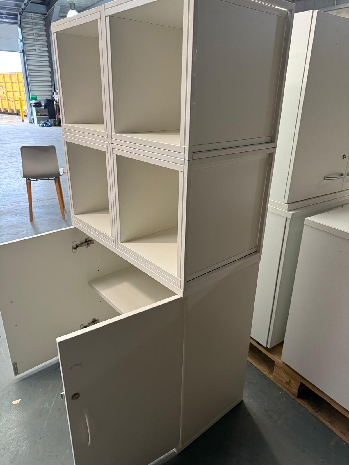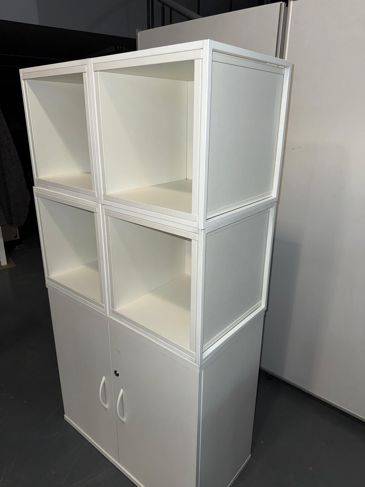Elevate your workspace with this versatile, modern, and highly functional storage cabinet designed to keep your environment organised and visually appealing. Engineered with clean lines and a durable white finish, this unit effortlessly blends into offices, studios, classrooms, retail spaces, and home work areas. Its clever combination of open cube shelving and secure enclosed storage offers the perfect balance between display and discretion.