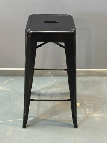 Crafted from strong, powder-coated metal, the stool provides excellent strength and long-lasting reliability. The tapered legs create a stable foundation, while the integrated footrest bar adds comfort for users during extended seating. The minimalist all-black finish gives the stool a stylish, versatile appearance that blends effortlessly with modern, industrial, and commercial interiors.